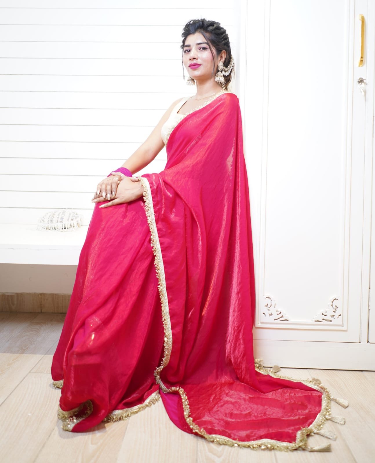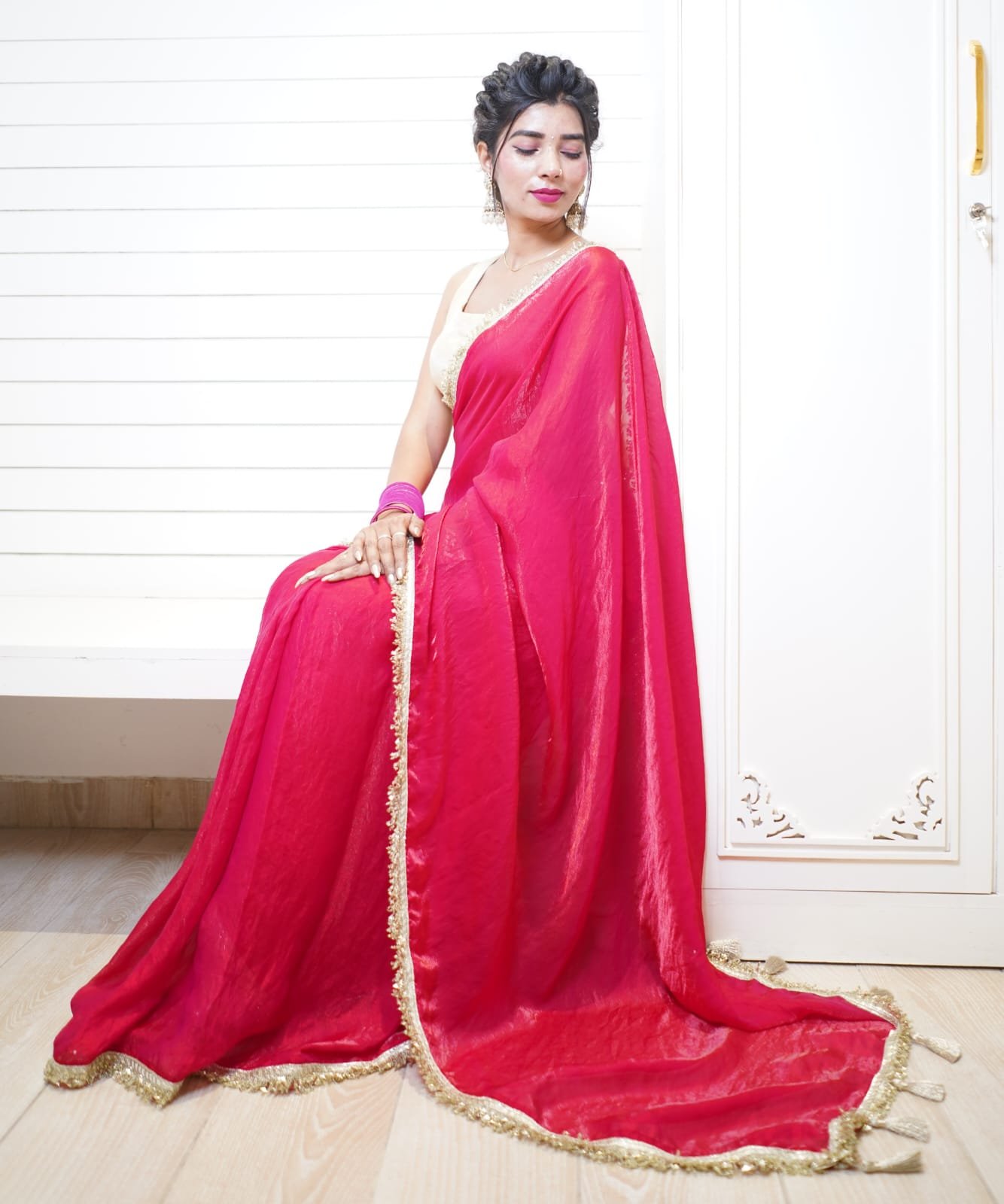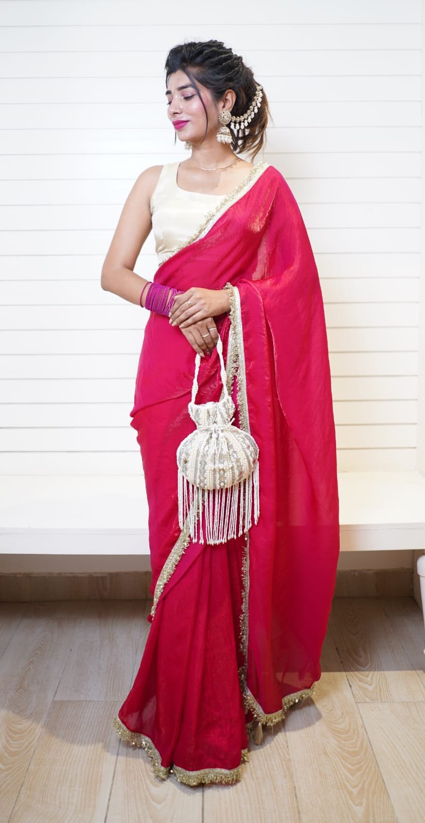 Step into the world of opulence with our Ready To Wear Crush Silk Saree. This exquisite saree is a masterpiece of craftsmanship, featuring intricate detailing and a luxurious crush silk fabric. The rich texture and smooth finish will make you feel like royalty as you glide through any event with unmatched grace and elegance.